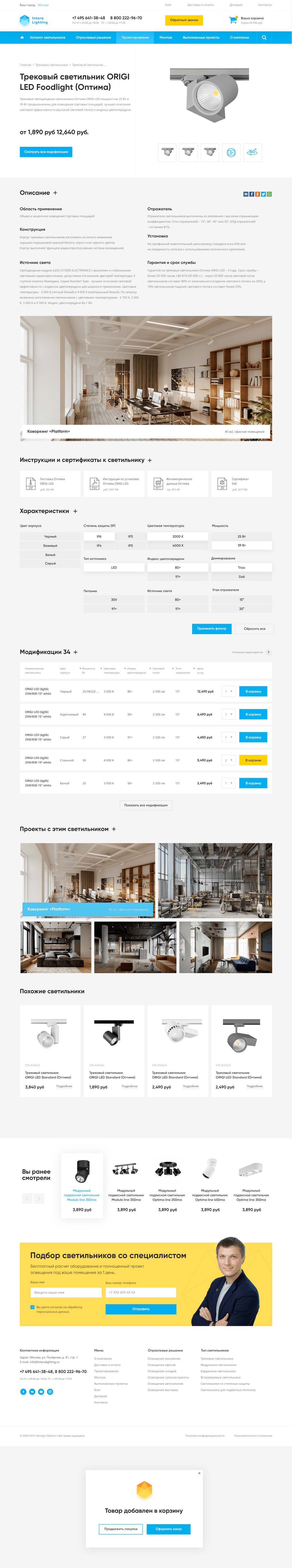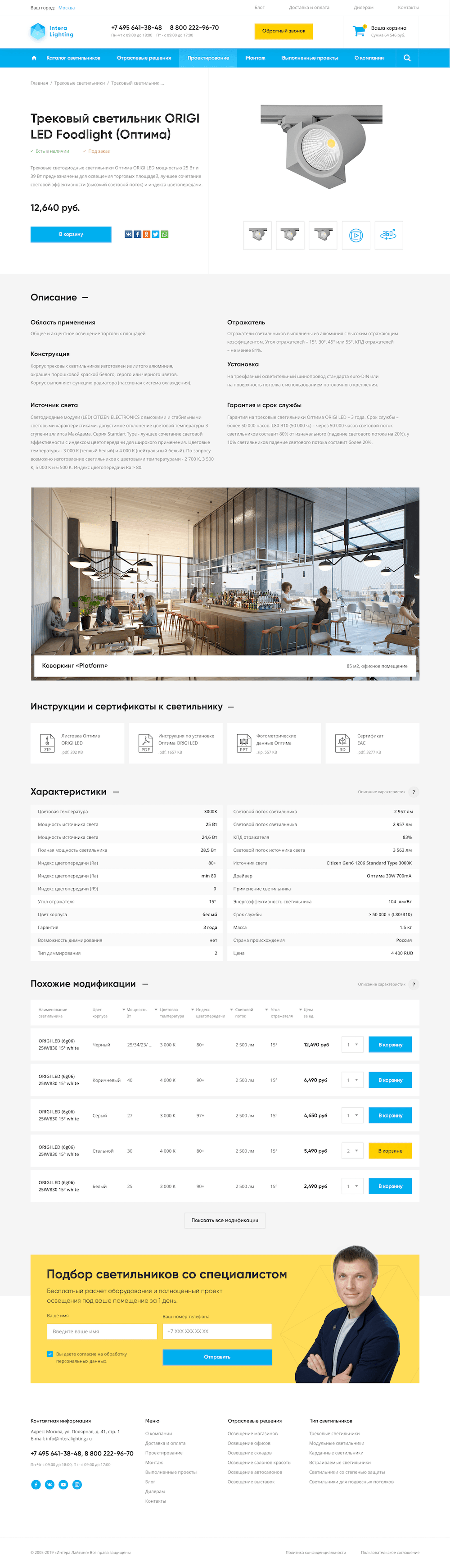 - Для ЦА, которая совсем не хочет разбираться в типах светильников, добавили блок с предложением бесплатного подбора и расчета оборудования.